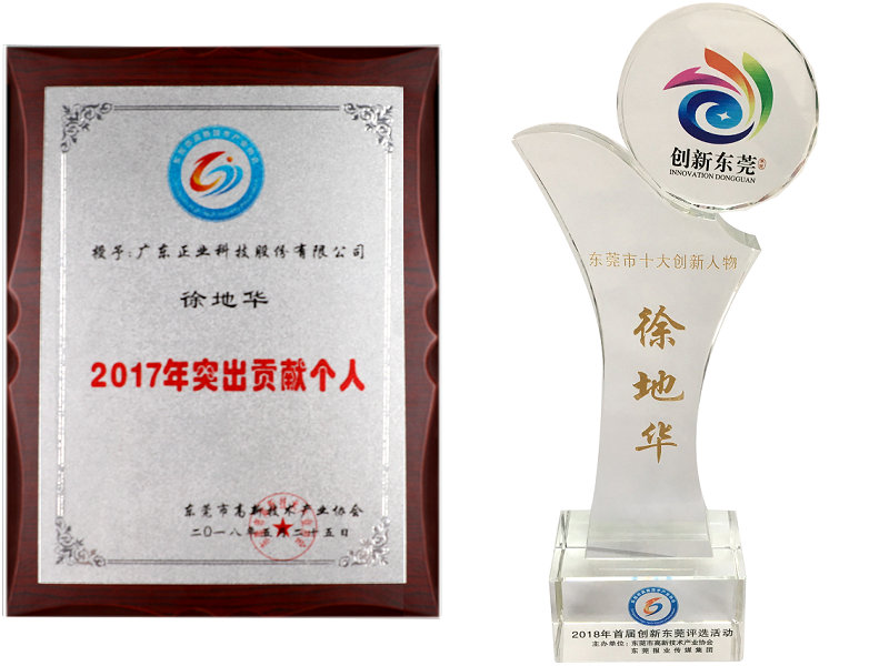 徐董事長曾榮獲2018年度東莞市十大創(chuàng)新人物、2017年度東莞十大經(jīng)濟人物和2017年度突出貢獻個人等榮譽獎項,這對徐董事長的研發(fā)創(chuàng)新和貢獻成果給予了高度的肯定和評價。