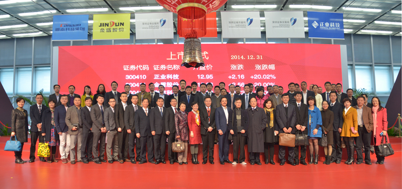 2014年12月31日上午,廣東正業(yè)科技股份有限公司(以下簡(jiǎn)稱“正業(yè)科技”)在深交所A股上市。30日晚,公司在中國最具發(fā)展?jié)摿Φ母咝录夹g(shù)產(chǎn)業(yè)開發(fā)區(qū)——東莞松山湖高新技術(shù)產(chǎn)業(yè)園區(qū)凱悅酒店舉辦答謝酒會(huì),來自社會(huì)各界有關(guān)部門及各中介機(jī)構(gòu)、合作伙伴的朋友們歡聚一堂、舉杯同慶,共同慶賀正業(yè)科技經(jīng)過17年的耕耘,終于收獲了成功和喜悅,成功登陸資本市場(chǎng)。